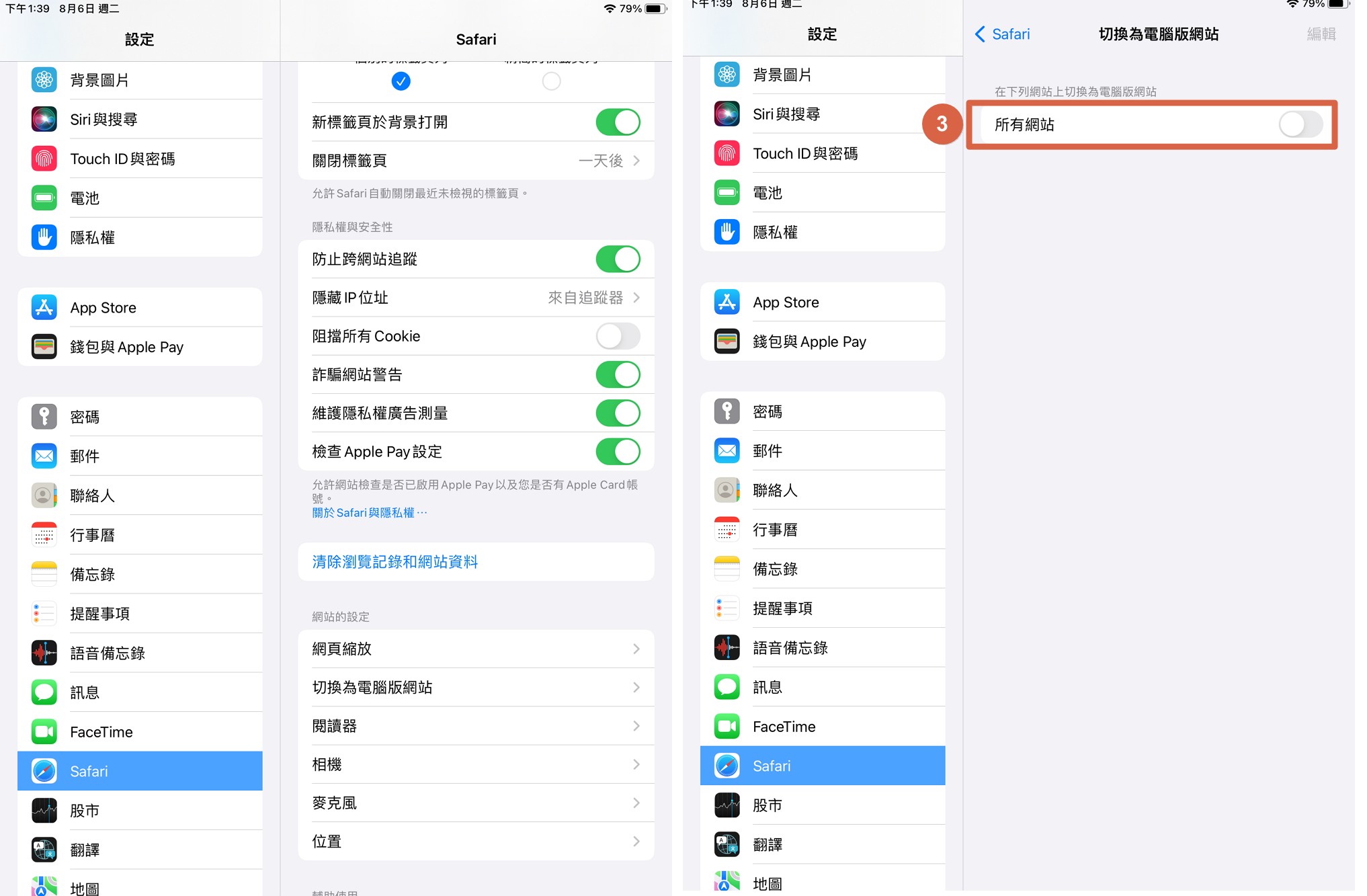 若操作平板欲查看檢測報告書卻發現只有顯示第一頁,後續內容看不見時,麻煩您至平板中的設定,找到您使用的瀏覽器,往下拉並找到切換為電腦版網站,